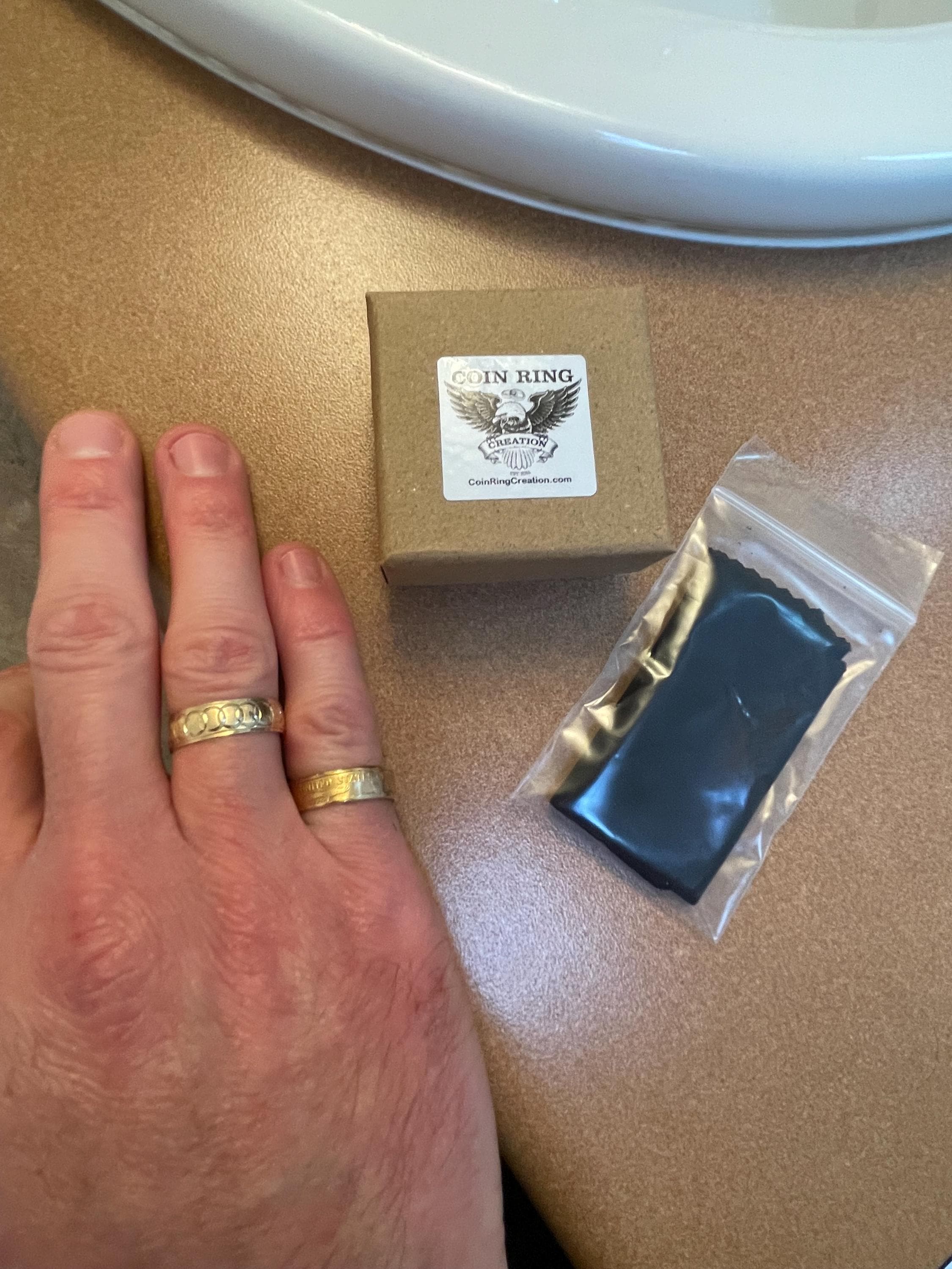 Beautiful ring! Great quality and craftsmanship. Curt really has great communication and works with you on every detail of the piece and sizing. If you got the money i wouldn’t hesitate to buy with confidence, these rings are expensive but made out of a genuine 1/4oz gold eagle!